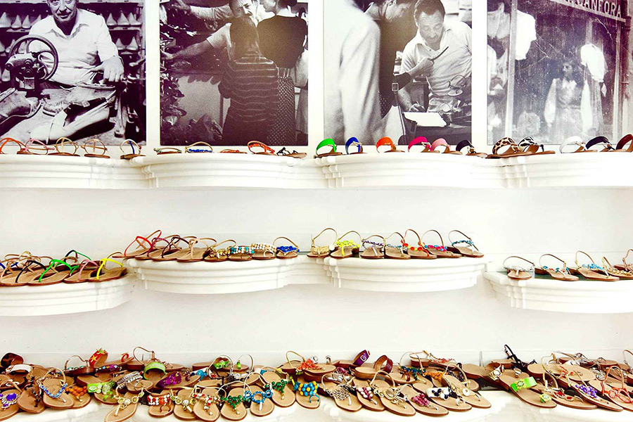 Si por el contrario quieres comprar un producto que solo puedes encontrar en la isla azul, te recomendamos que visites el taller de «Sandali di Canfora«, sandalias realizadas rigurosamente a mano. De hecho, en la tienda, los clientes podrán medir el pie y luego elegir las decoraciones y el color de las correas que luego se coserán al momento. Esta actividad ha cautivado a personalidades de fama mundial como Jackie Kennedy quien, sola a medianoche, deseaba elegir en paz sus sandalias. Enamoradas de este particular calzado de Capri han sido también Grace Kelly, Maria Callas, Sofia Loren, Anita Ekberg y Naomi Campbell. En definitiva, ¡un verdadero y propio culto que nunca se oculta!