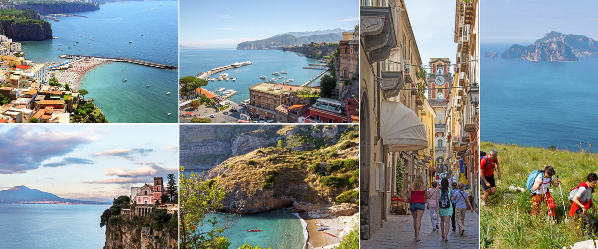 El núcleo principal es Sorrento, la joya de toda la costa. La ciudad tiene un centro histórico realmente fascinante, que comienza en la plaza Torquato Tasso y se desarrolla entre los callejones de Corso Italia donde está repleta de muchas tiendas de artesanía y productos típicos. Destino turístico por excelencia, aquí se concentran impresionantes lugares de culto como la Catedral y la Basílica de Sant’Antonino. Desde esta localidad, puedes llegar fácilmente a los principales lugares de interés de la Península de Sorrento: Vico Equense, ideal para aquellos que buscan baños relajantes, Massa Lubrense, destino famoso por su rica gastronomía, Sant’Agata sui due Golfi, auténtica terraza con vistas al mar, Meta di Sorrento, antigua ciudad griega y romana, y Sant’Agnello, pequeño municipio de tradición agrícola.